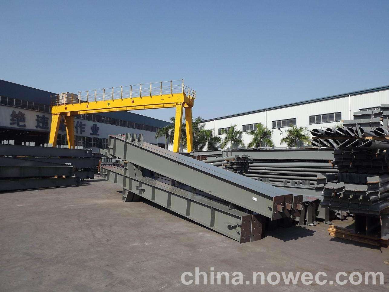 条状单元一般沿长跨方向分割,其宽度约为1~3个网格,其长度为l2或l2/2(l2为短跨跨距)。块状单元一般沿汾阳网架平面纵横向分割成矩形或正方形单元。每个单元的重量以现有起重机能胜任为准。条(块)与条(块)之间可以直接拼装,也可空一网格在高空拼装。由于条(块)状单元是在地面拼装,因而高空作业量较高空散装法大为减少,拼装支架也减少很多,又能充分利用现有起重设备,故较经济。这种安装方法适用于分割后网架的钢度和受力状况改变较小的各类中小型网架,如两向正交正放四角锥、正放抽空四角锥等网架。
